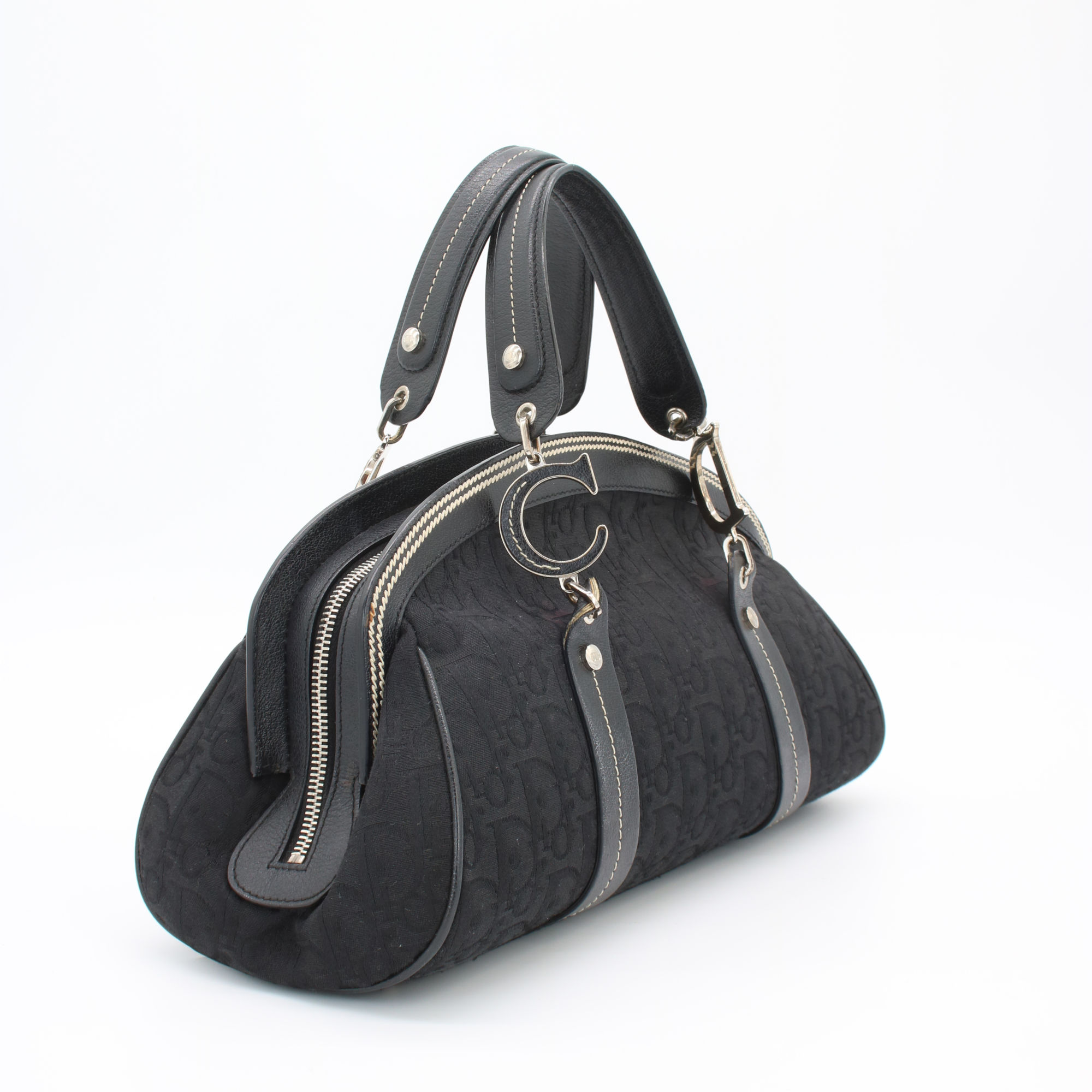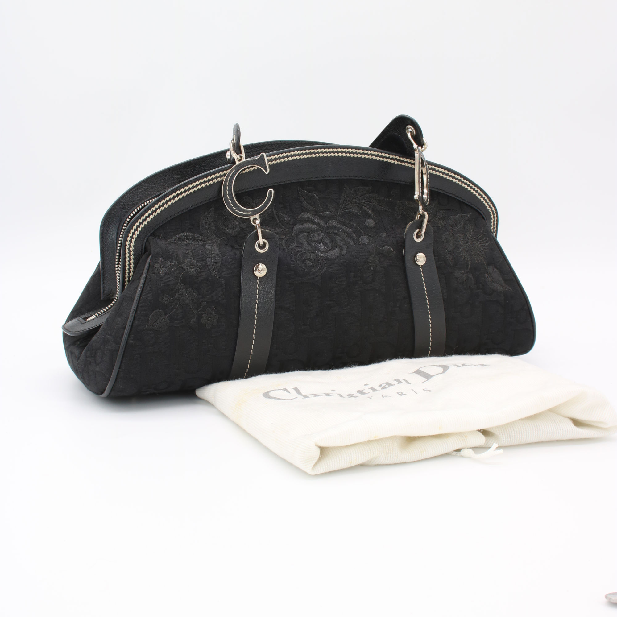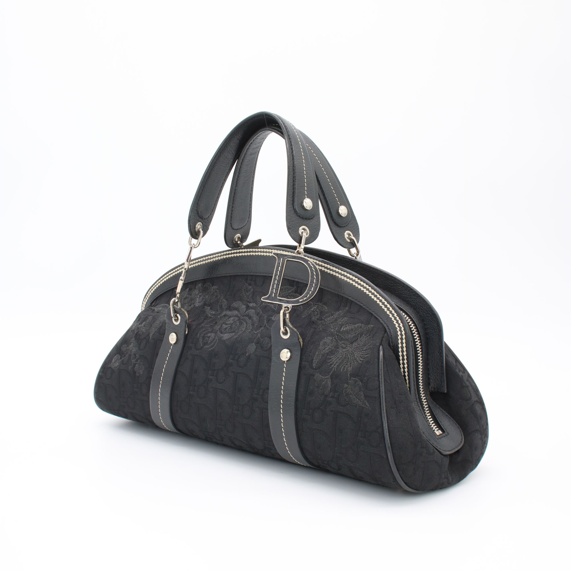 Ikonische Christian Dior Trotter Handbag aus dem Jahr 2005 mit schwarzem Monogramm und floraler Stickerei. Ein begehrtes Vintage-Design, das zeitlose Eleganz mit Sammlerwert verbindet.