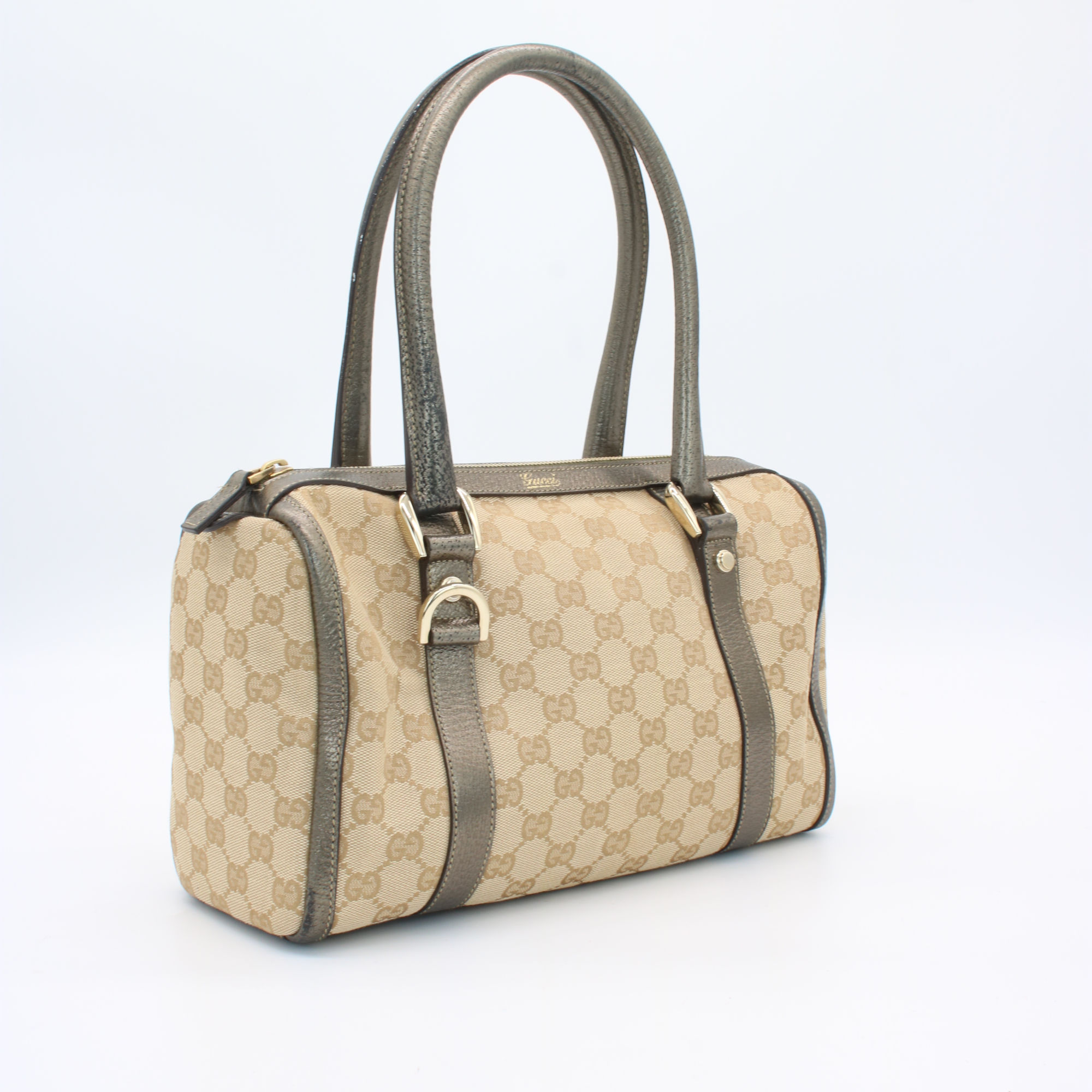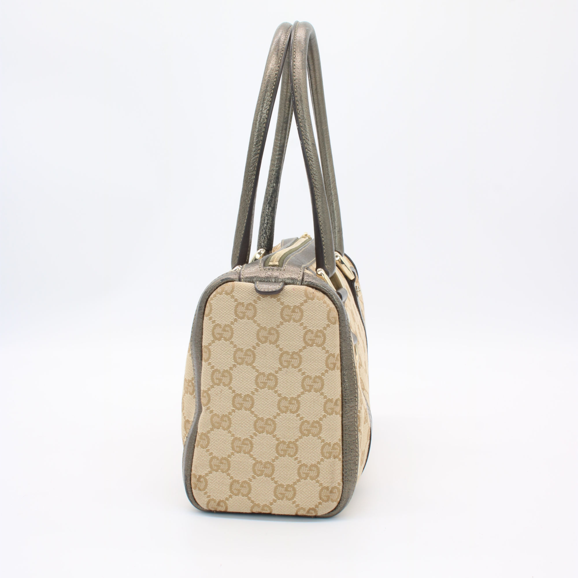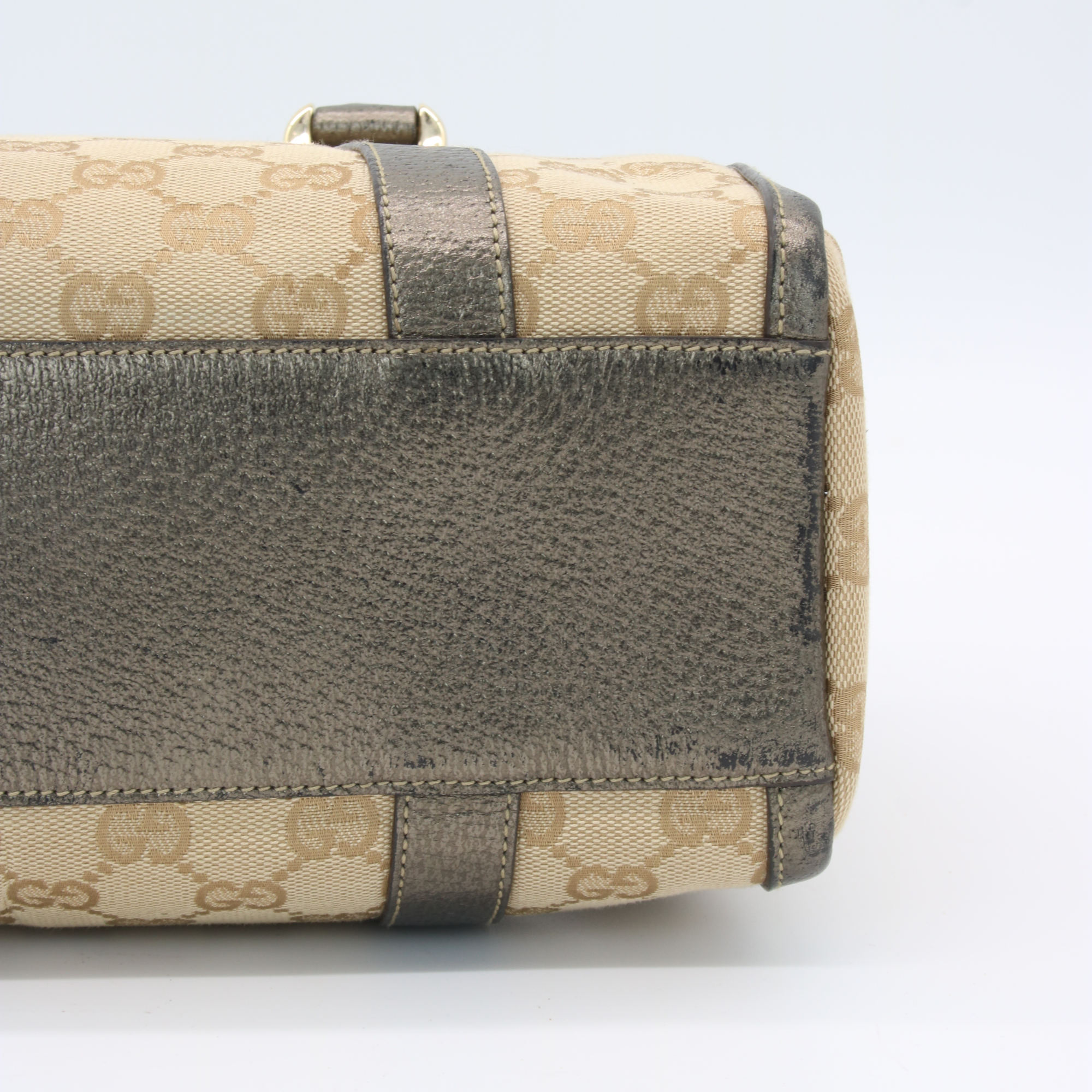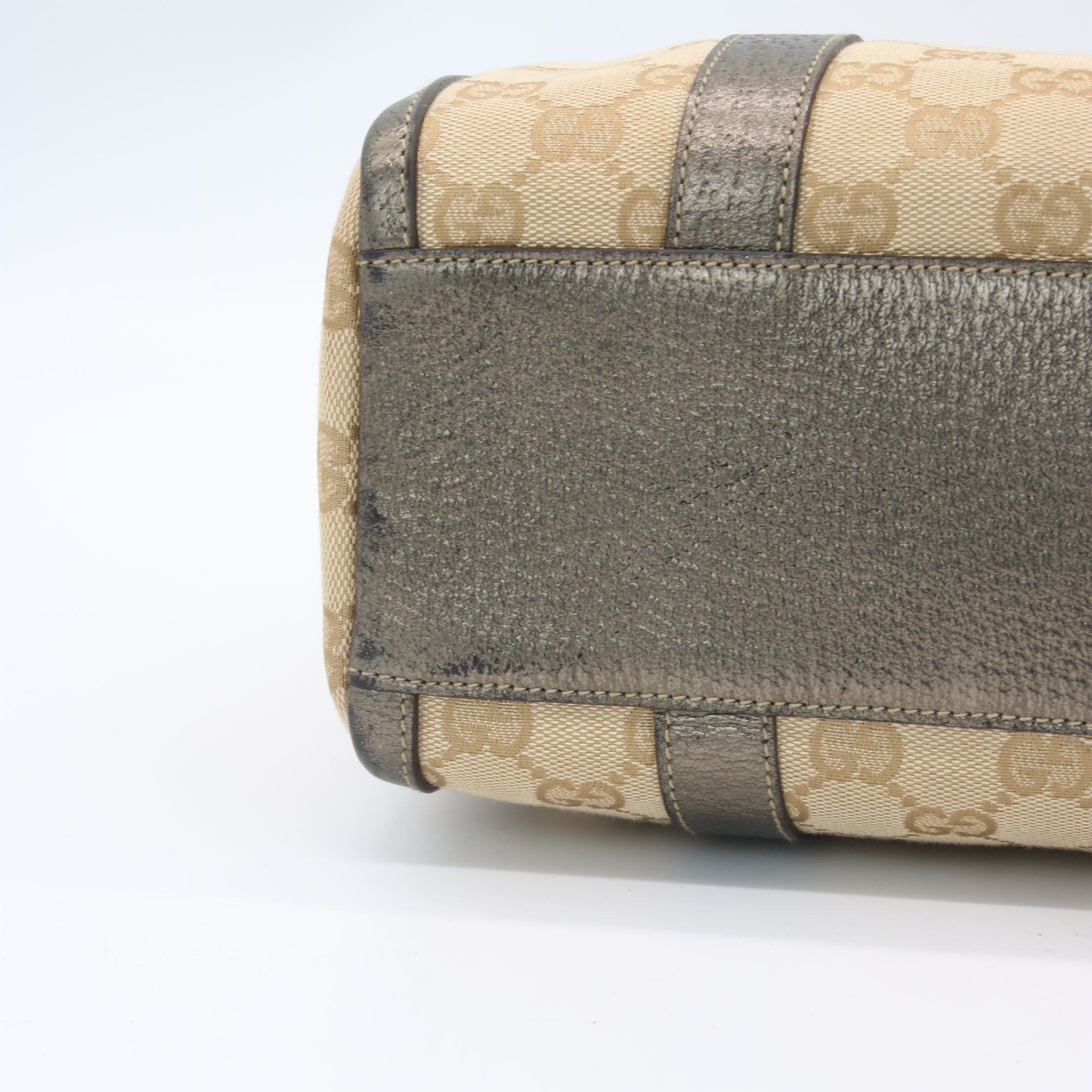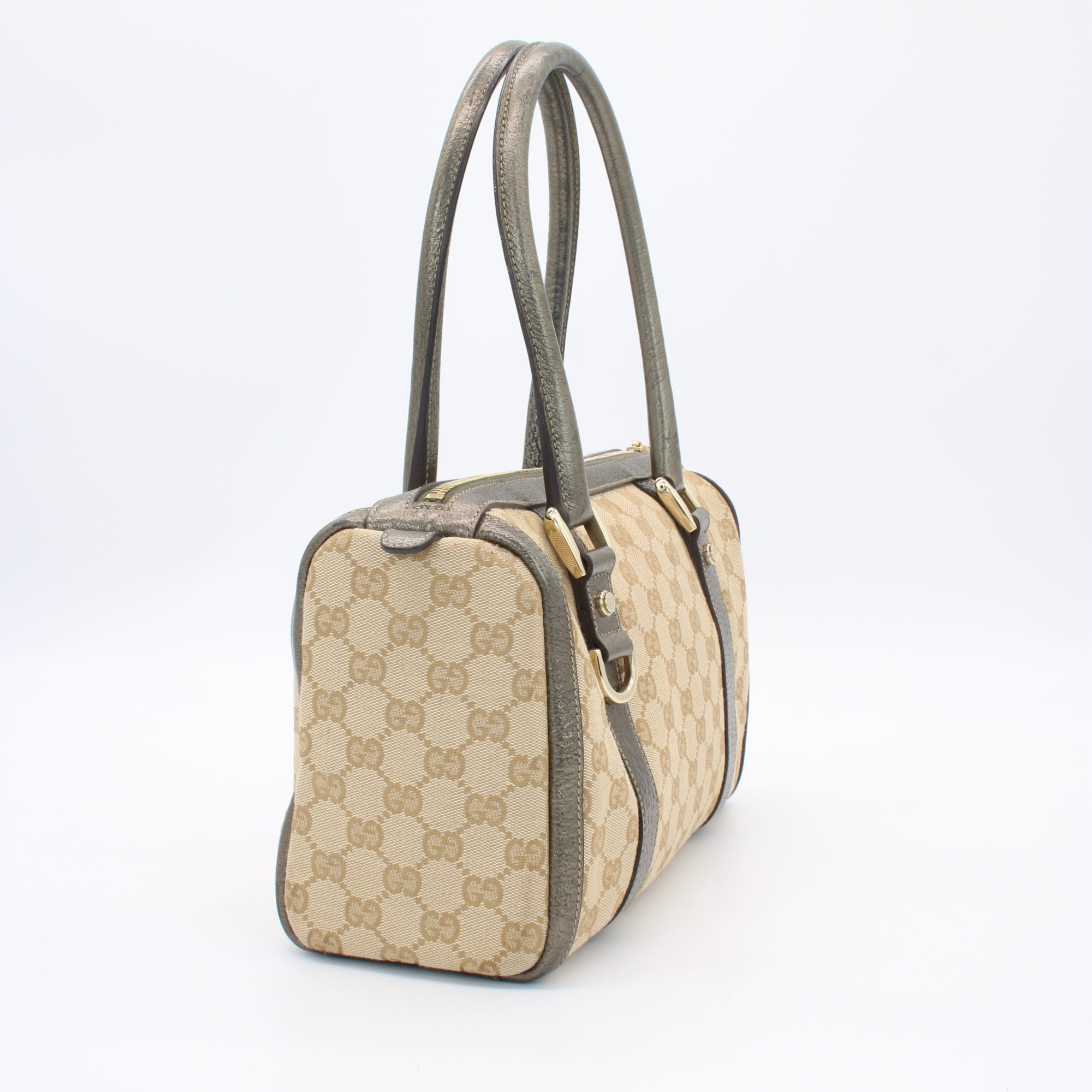 Gucci Abbey GG Canvas Leather Mini Boston Bag Beige Silver