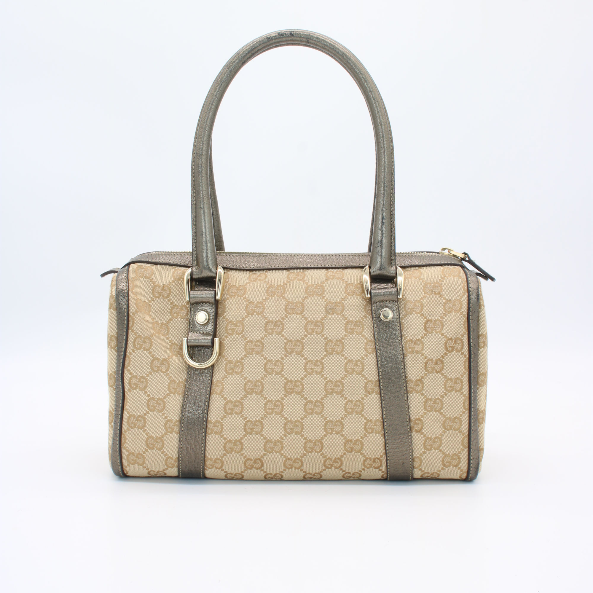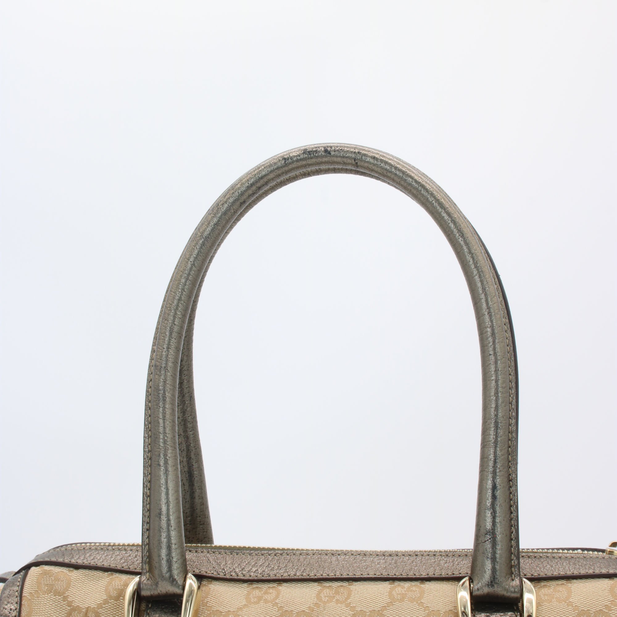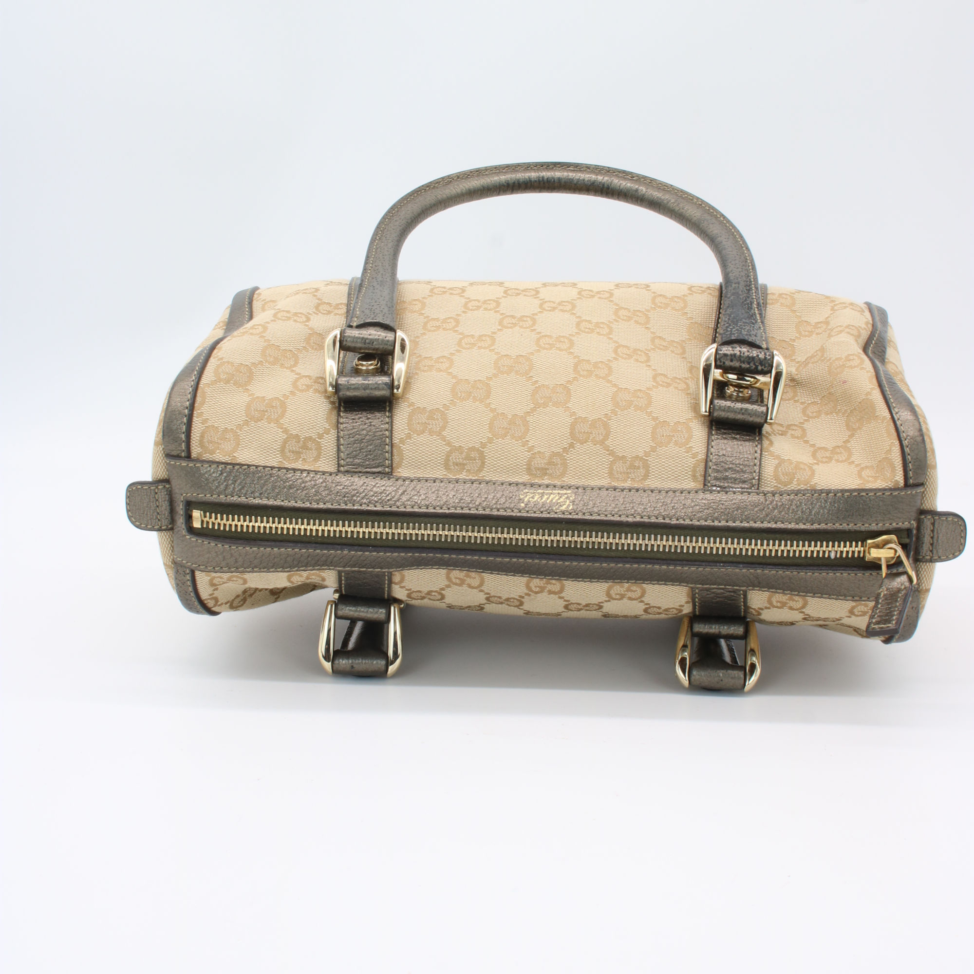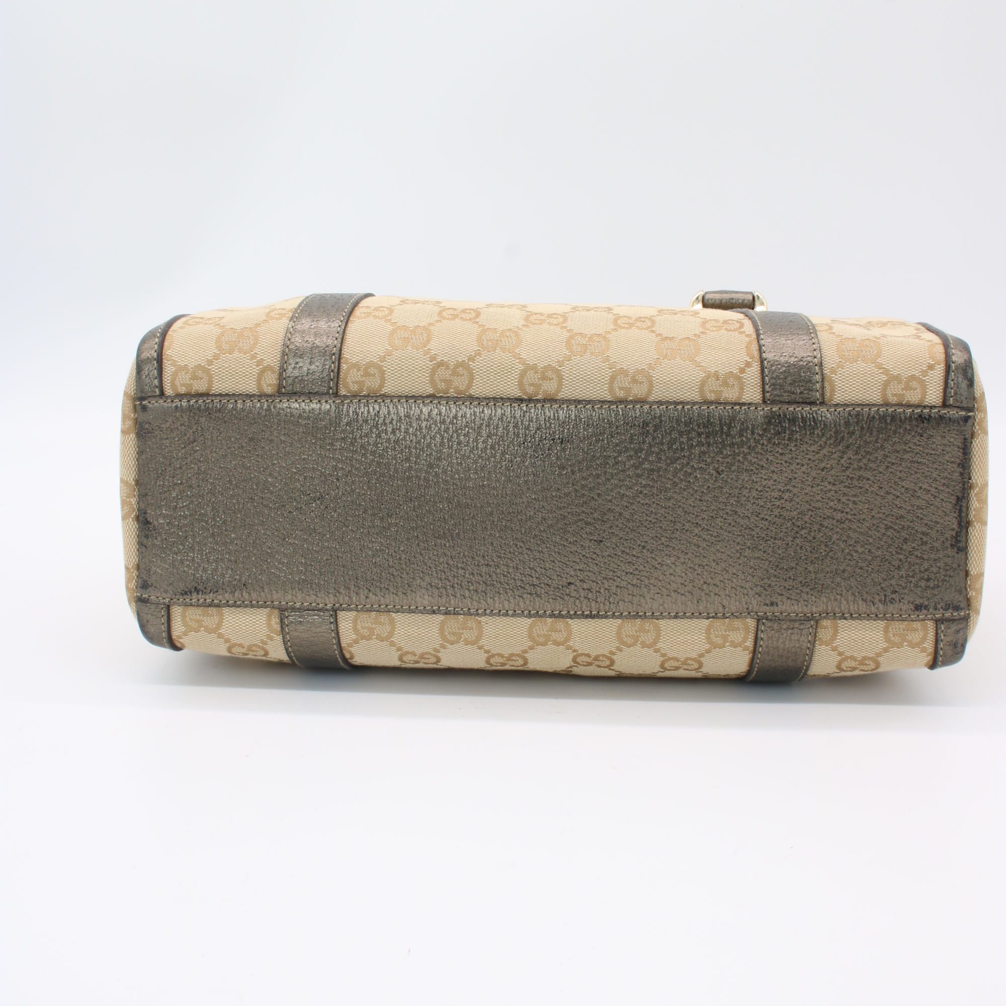 Gucci Abbey GG Canvas Leather Mini Boston Bag Beige Silver