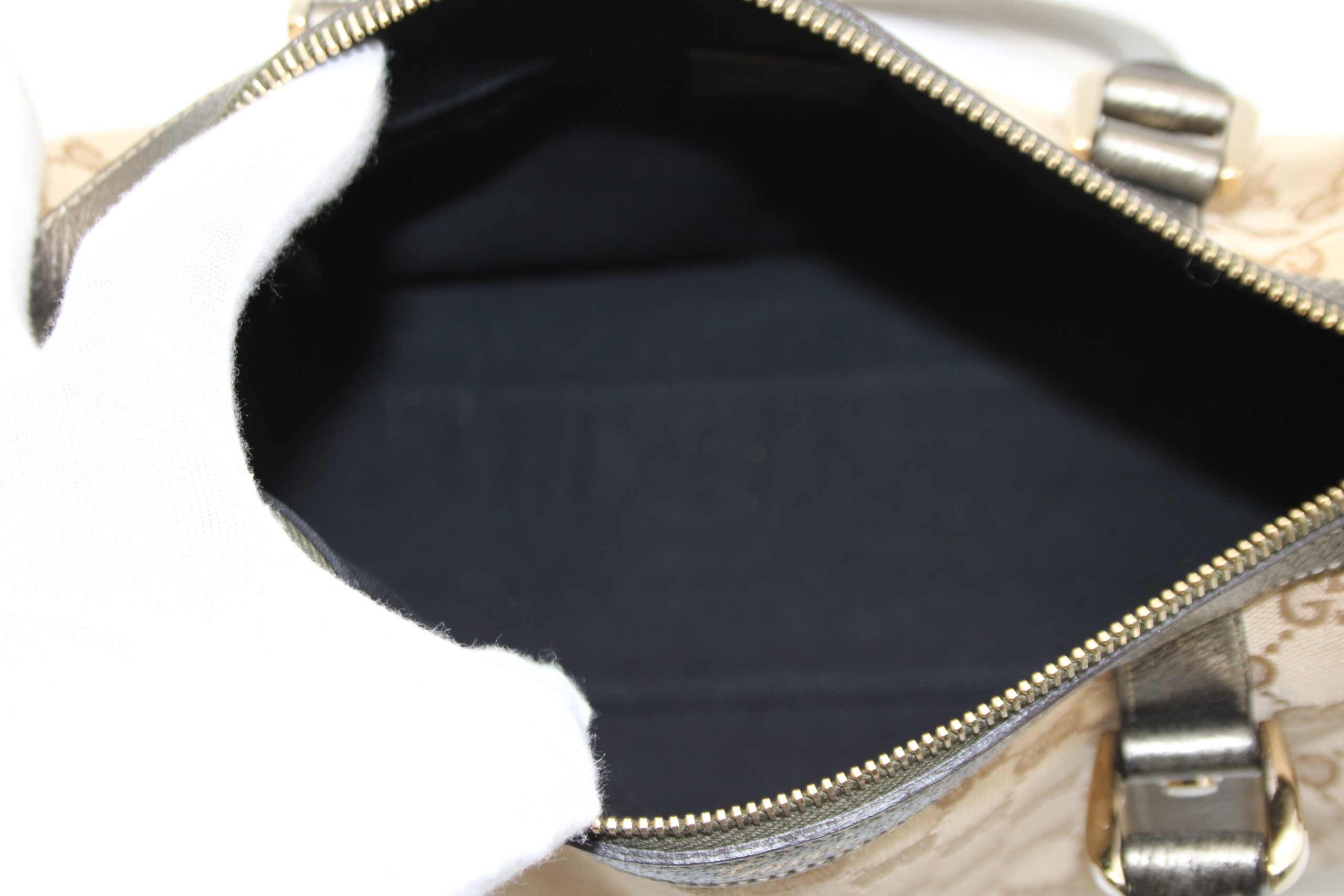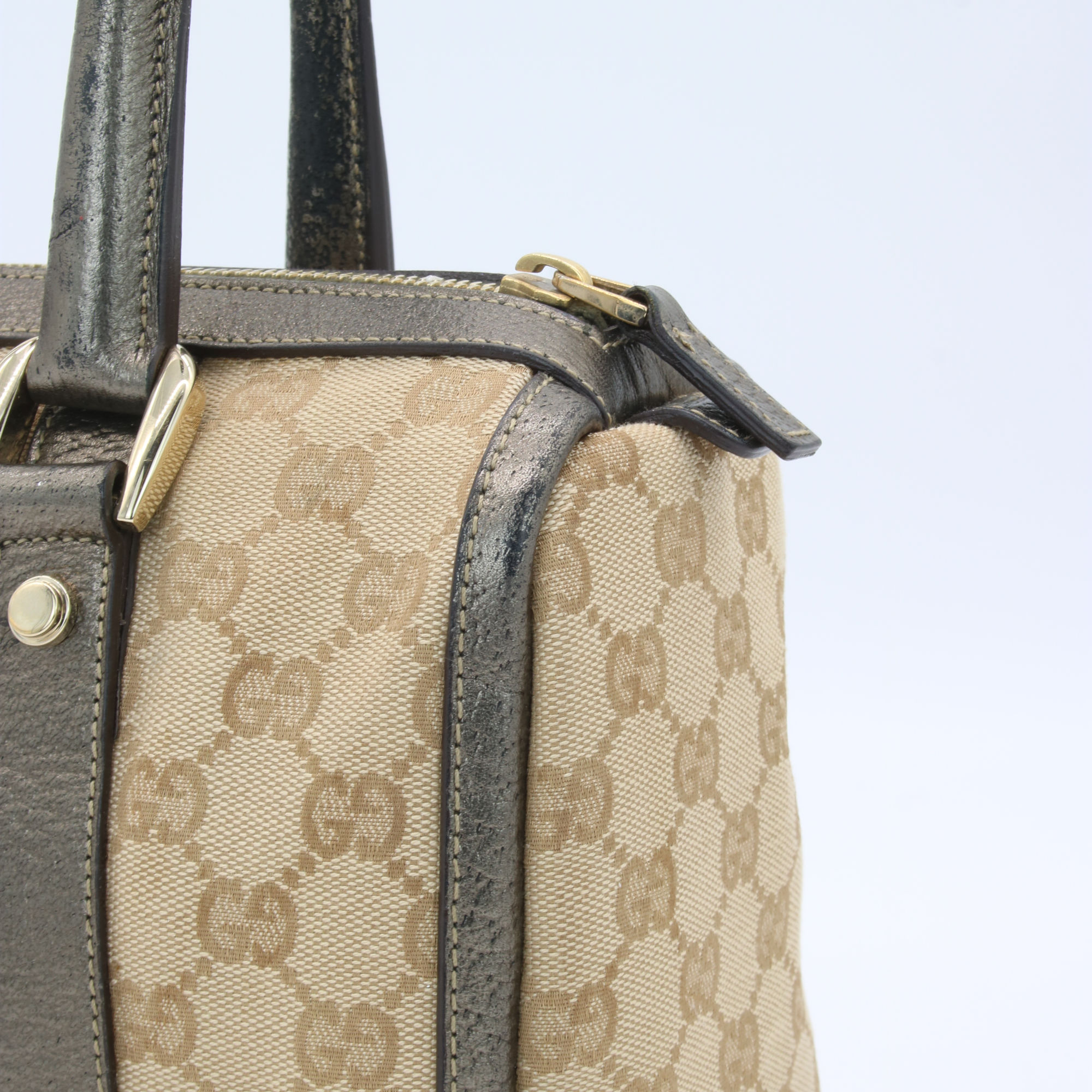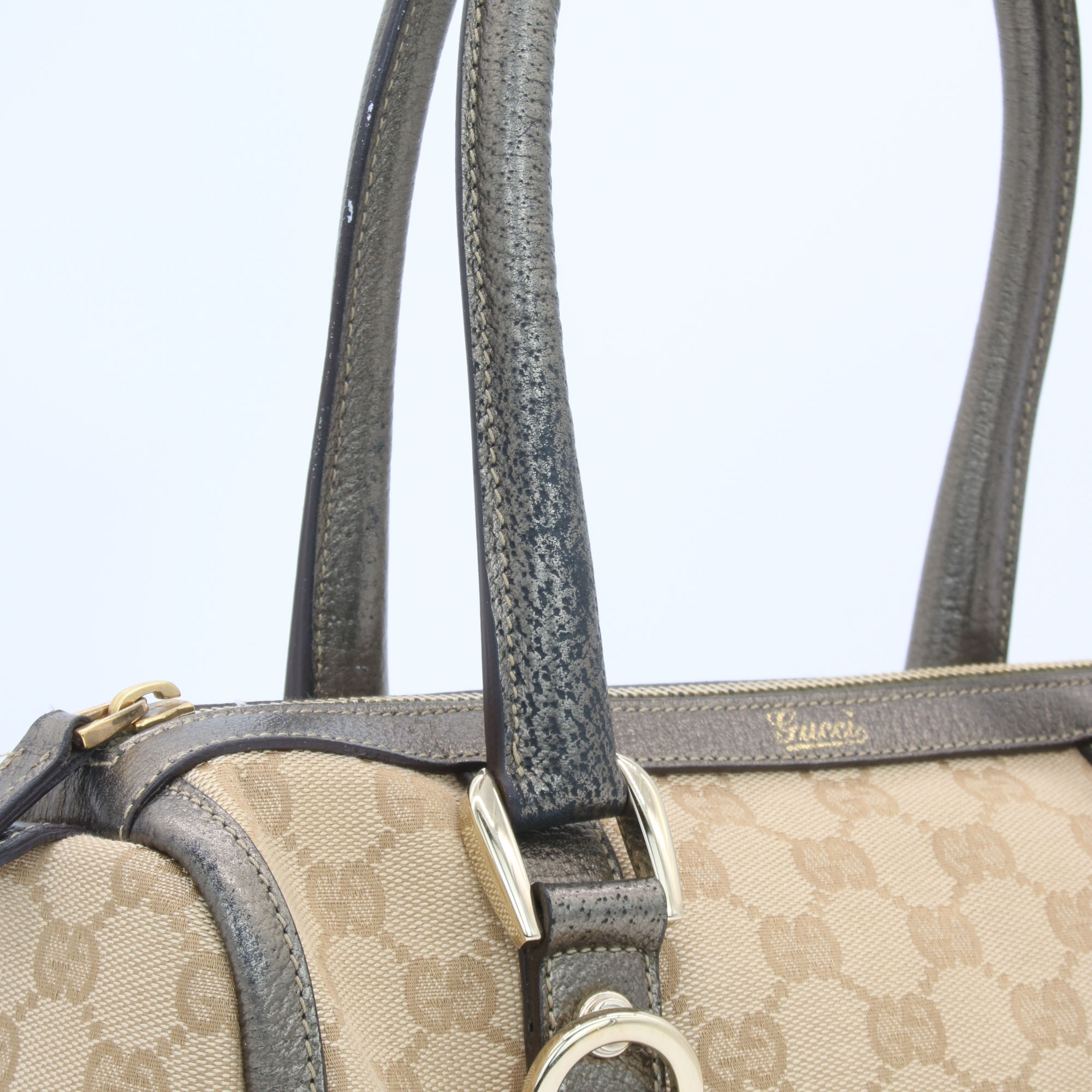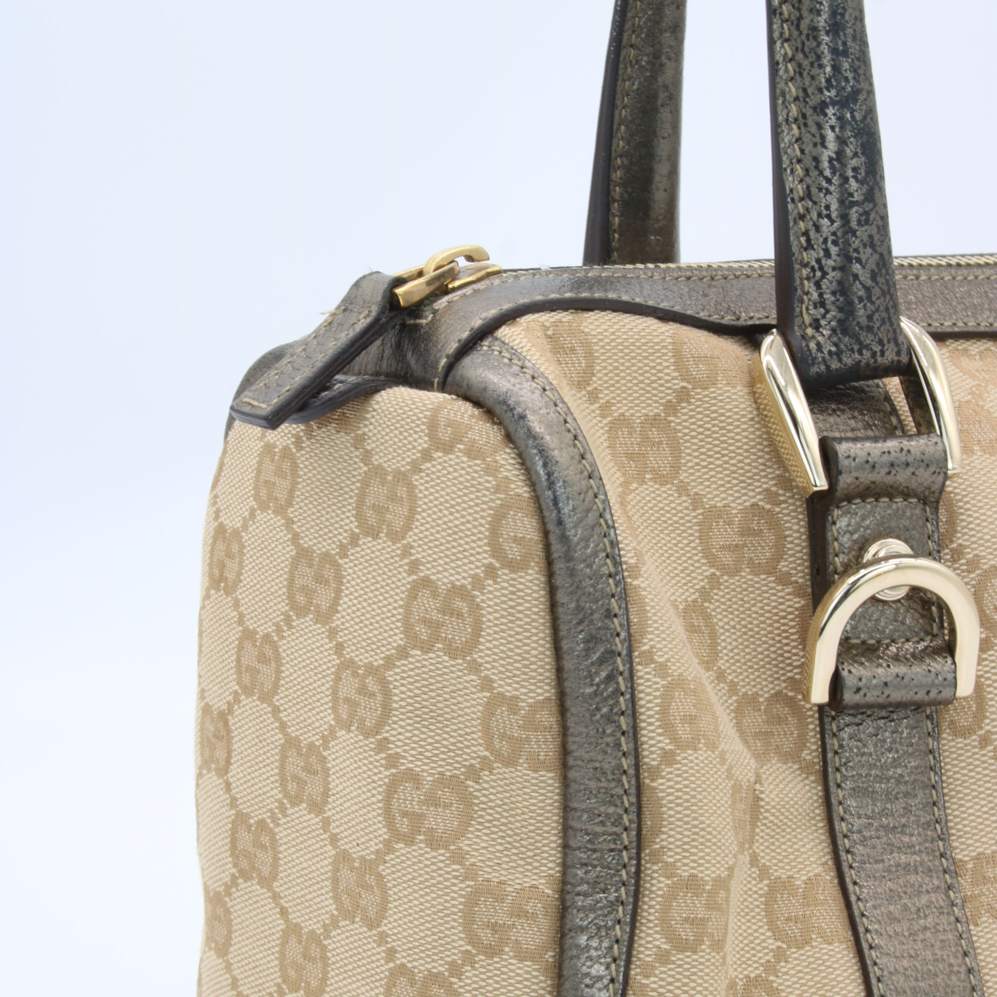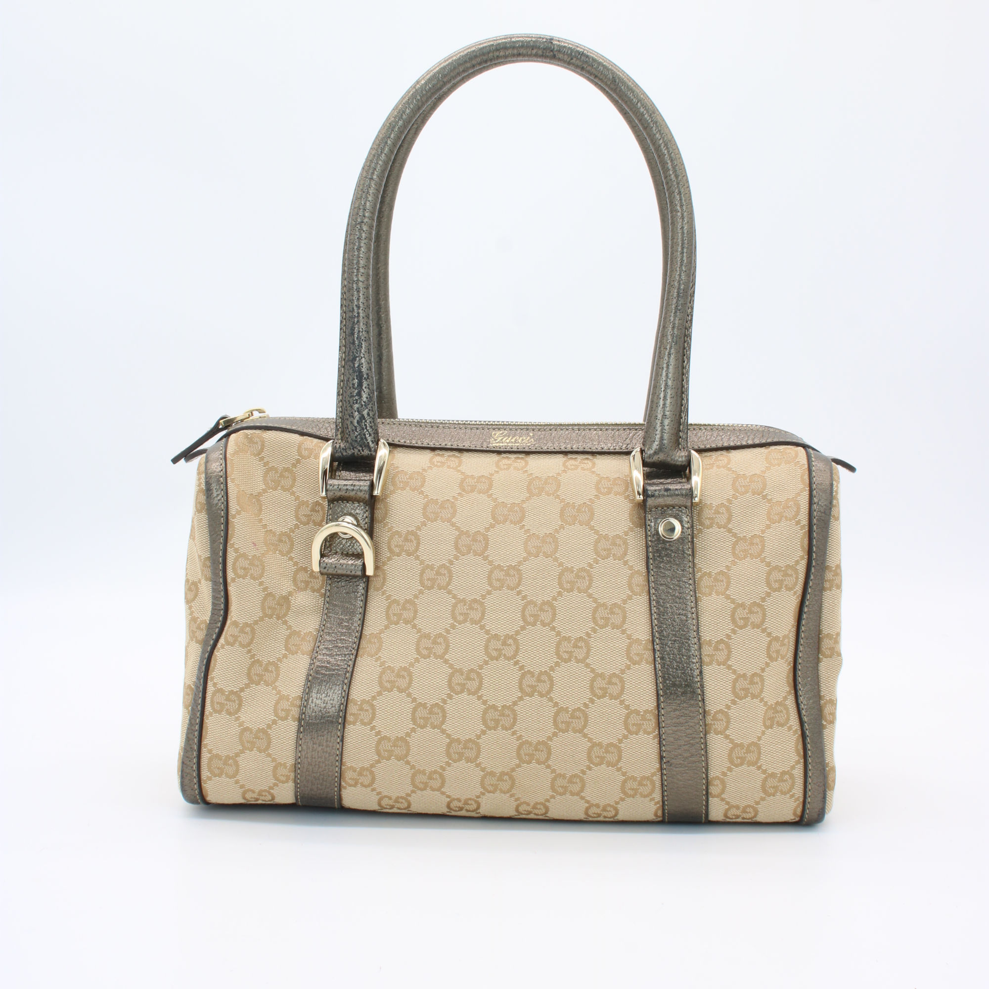 Gucci Abbey GG Canvas Leather Mini Boston Bag Beige Silver