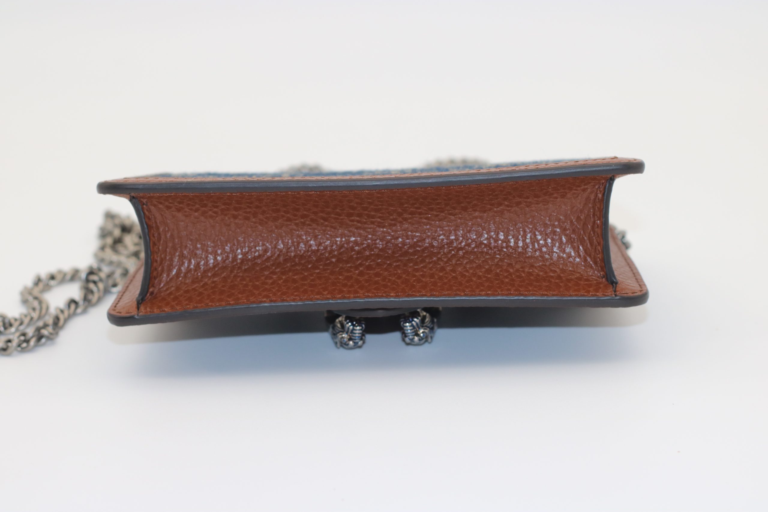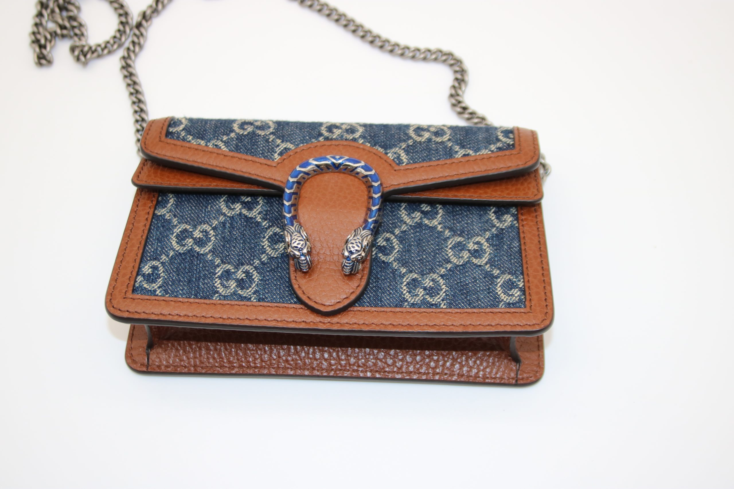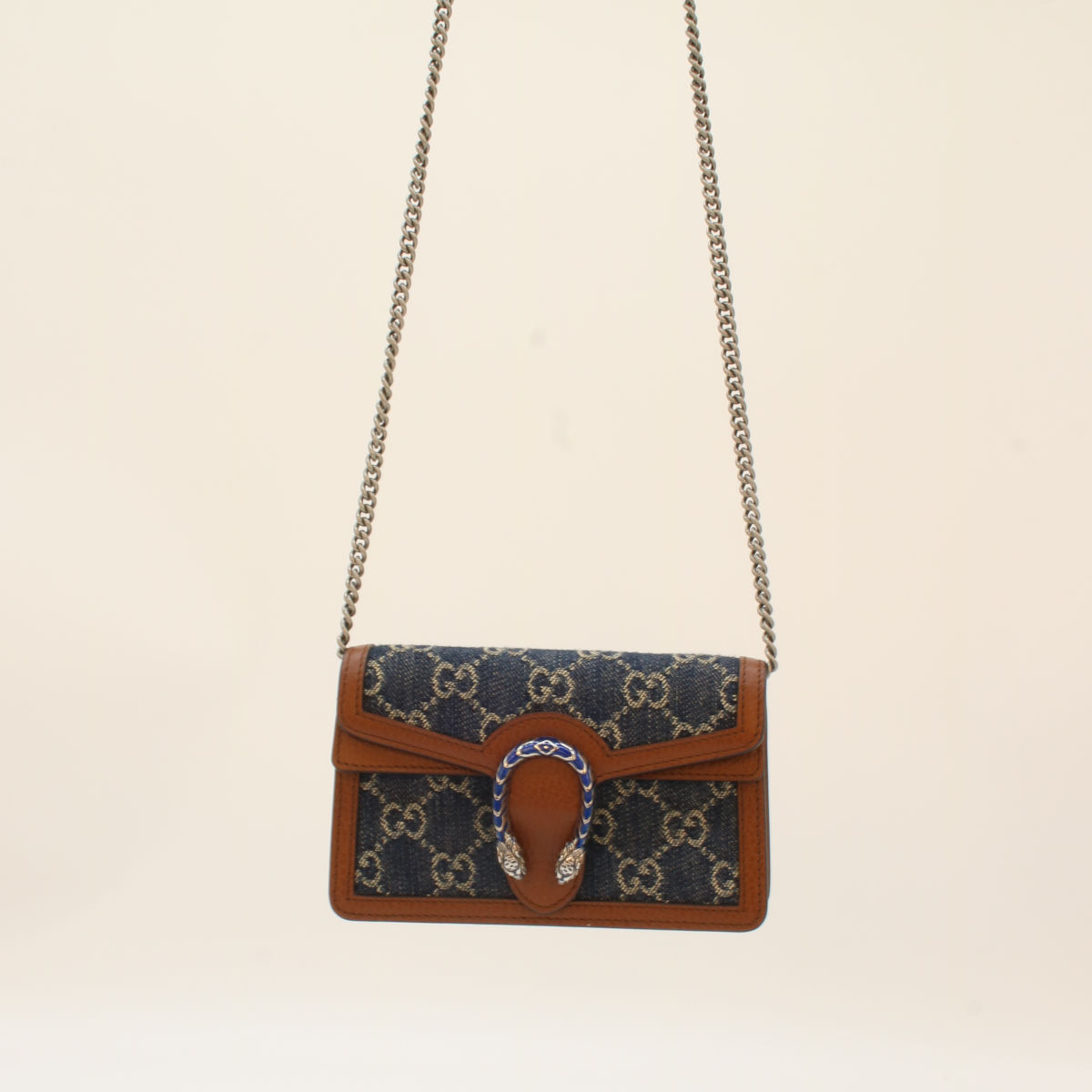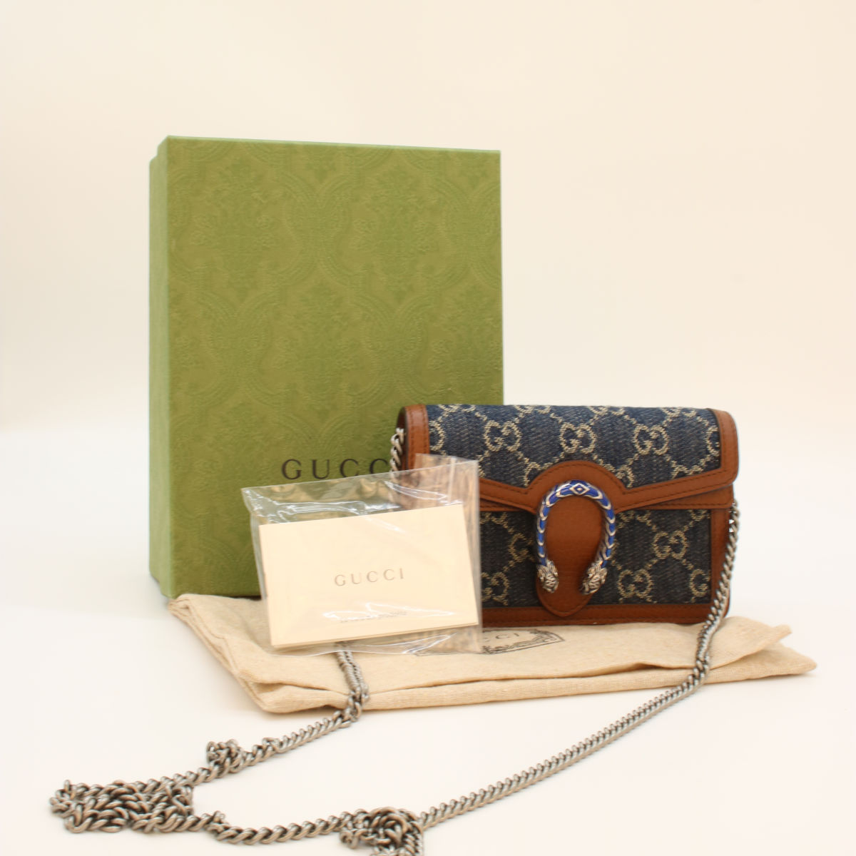 Die Gucci Dionysus Super Mini vereint Luxus und Stil in kompakter Form. Aus hochwertigem Denim und Leder gefertigt, besticht sie durch das ikonische GG-Muster und den markanten Dionysus-Verschluss. Exzellenter Zustand – mit Originalpapieren, Karton und Dustbag. Die perfekte Tasche für elegante City-Looks oder besondere Momente, die deinen Stil unterstreicht.
